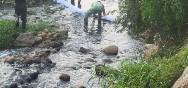 民眾20日下午通報觀音區觀音溪出現油污污染,環保局