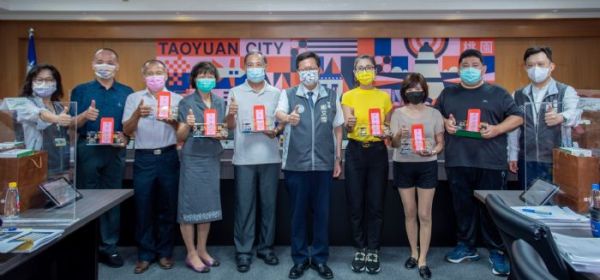 市長與110年各機關學校績優事務人員合照。 桃園市