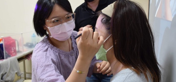 曾經是飯店主管的方千芳(左1)參加美容職訓學習美妝