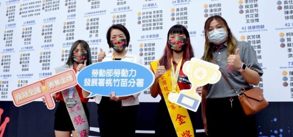 桃竹苗分署長林淑媛(左2)與培訓獲金牌的選手陳思妤