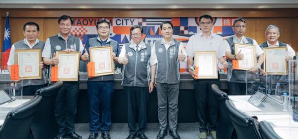 桃園市長鄭文燦13日下午主持市政會議,頒發桃園市1