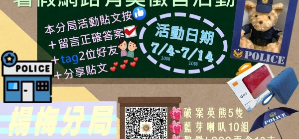 暑假已在萬眾期待下正式開始,桃園市政府警察局楊梅分