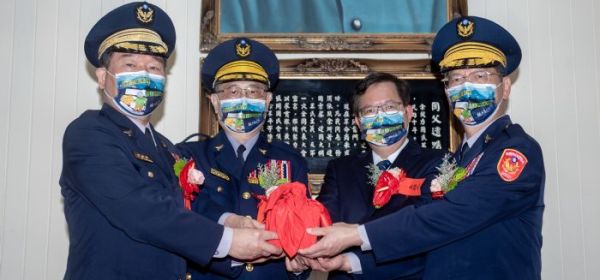 桃園市長鄭文燦7日上午前往桃園市政府警察局2樓大禮