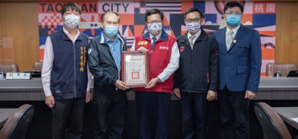桃園市長鄭文燦19日下午主持市政會議,表揚陳允棟先