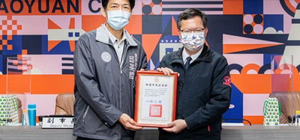 桃園市長鄭文燦13日主持市政會議,表揚市府「110