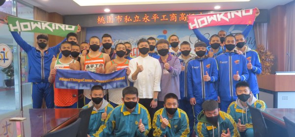 皓愷有限公司業務總經理羅凱(左)贊助永平工商男子籃