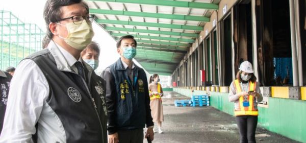 桃園市長鄭文燦25日上午前往楊梅區,視察家樂福倉儲