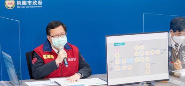 桃園市長鄭文燦28日上午主持市府疫情說明記者會時表