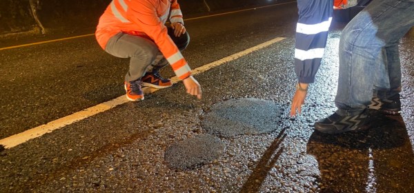 民眾反應台61路面坑洞情形,因天候持續降雨,無法採