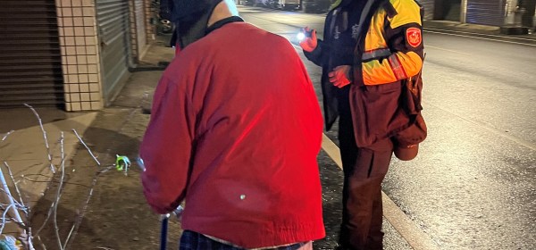 失智翁穿著短褲深夜在外遊蕩,楊梅分局員警發現後將他