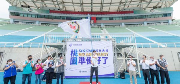 桃園市長鄭文燦(14)日上午前往桃園市立田徑場,出