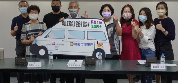 吳美女女士9日捐贈桃園市1輛高頂復康巴士,由高安邦