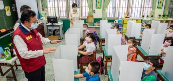 桃園市長鄭文燦30日上午前往青溪國小,視察開學前防