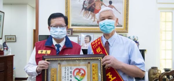 桃園市長鄭文燦5日上午前往觀音區,到宅表揚「110