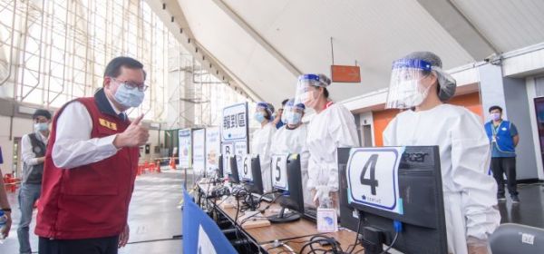桃園市長鄭文燦(25)日上午分別前往桃園巨蛋體育館