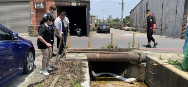 環保局接獲陳情大園區新生路溝渠水面有油污漂浮,環保