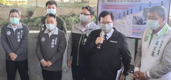 桃園市長鄭文燦20日下午前往觀音區,視察「新屋溪水