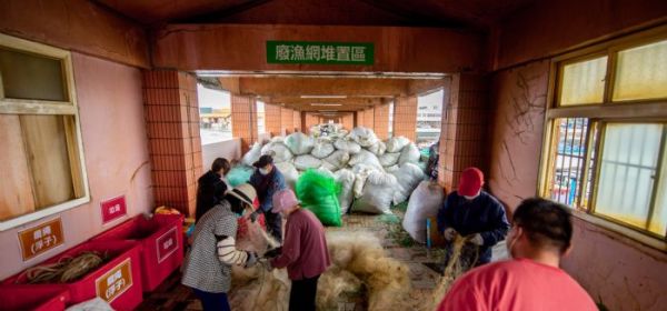 桃園市長鄭文燦9日下午前往竹圍漁港視察廢棄漁網回收