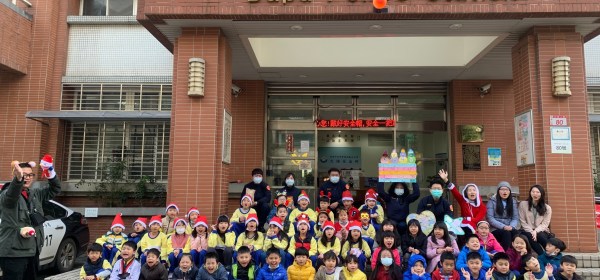 桃園市樂善國小校長簡妙娟22日上午帶著一群小朋友,