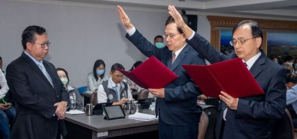 桃園市長鄭文燦18日上午主持新任地政局局長蔡金鐘及