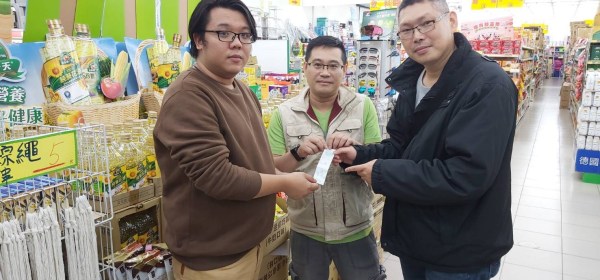 警員蔡孟志(右)透過電腦查詢找到了吳姓顧客(中)之