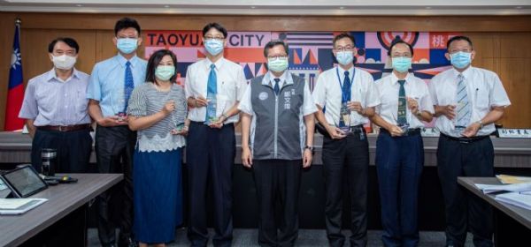 桃園市長鄭文燦(2)日上午主持市政會議,頒發「10
