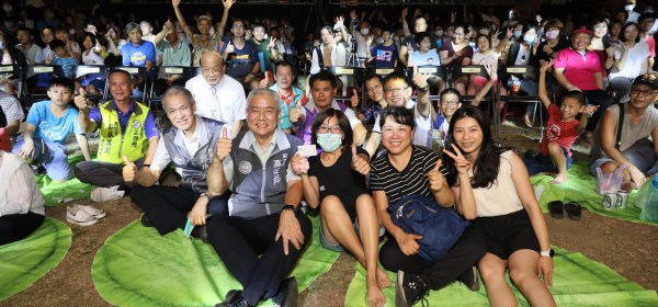 台上歌手賣力演唱,吸引許多民眾在台下h