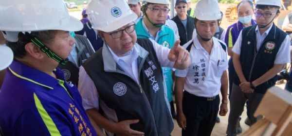 桃園市長鄭文燦20日上午前往大園區,視察滲眉埤土壤