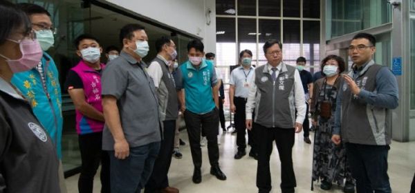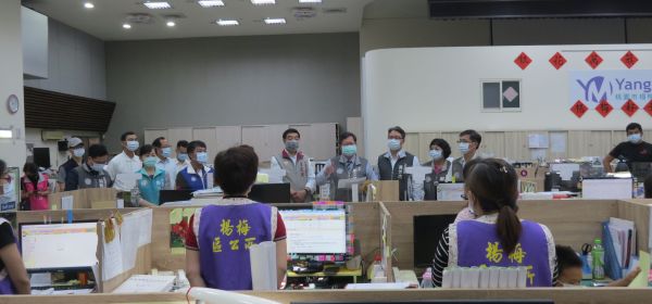 桃園市長鄭文燦昨日上午前往楊梅區公所,慰勉週日加班