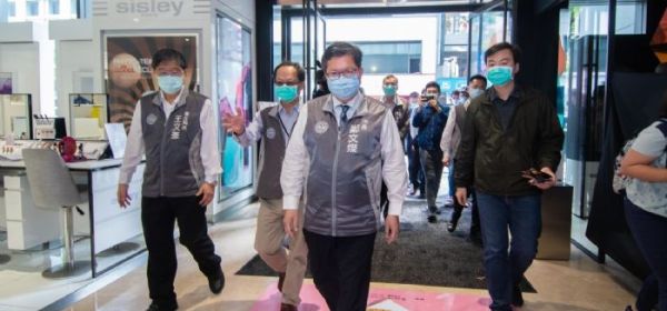 桃園市長鄭文燦20日上午前往桃園區視察消毒作業,鄭