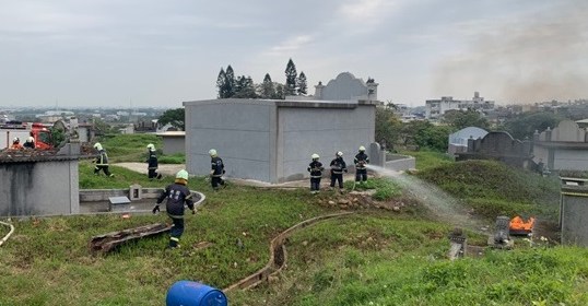清明掃墓季將屆,桃園市政府消防局第二大隊為維護墓地