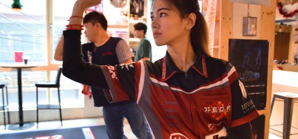 飛鏢運動講求專注力與穩定度,嬌小的盧思瑜打鏢時氣勢