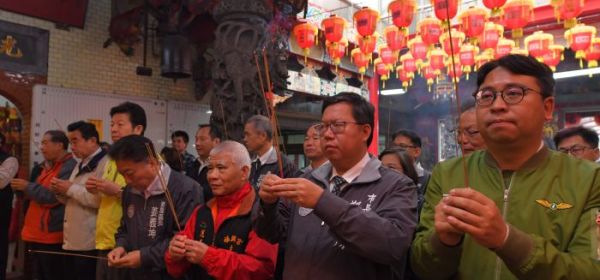 桃園市長鄭文燦29日上午前往楊梅區奉天宮、錫福宮、