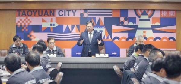 桃園市長鄭文燦(29)日上午前往市府,主持「因應武