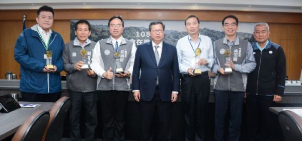 桃園市長鄭文燦27日上午主持市政會議,頒發「107