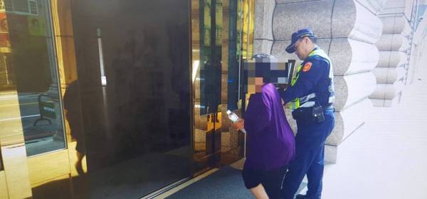 一名老婦人1日早上,因為迷路而在蘆竹交通分隊大門前