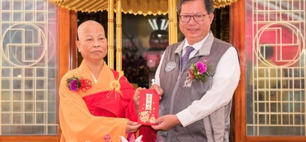 桃園市長鄭文燦21日上午前往中壢永平寺,代表市府接