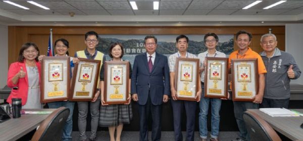 桃園市長鄭文燦16日上午主持市政會議,並頒發「桃園