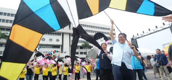 桃園市長鄭文燦(15)日於市政府前廣場,出席「20
