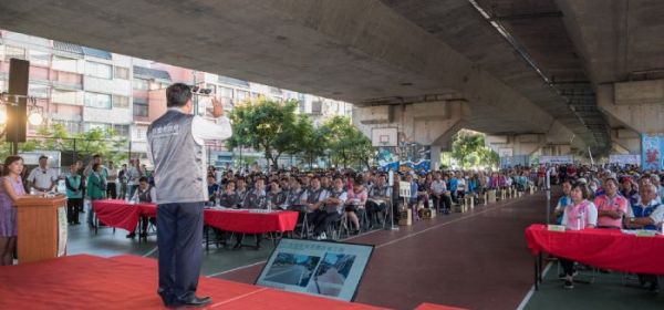 桃園市長鄭文燦(14)日下午前往龍潭區北二高橋下籃