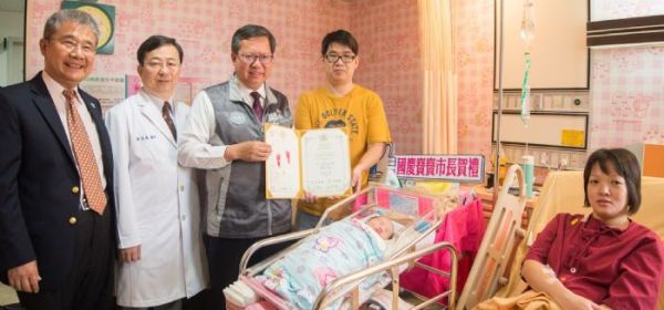 桃園市長鄭文燦11日上午前往中壢區宏其婦幼醫院探視