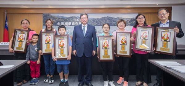 桃園市長鄭文燦(25)日上午主持市政會議,表揚點點