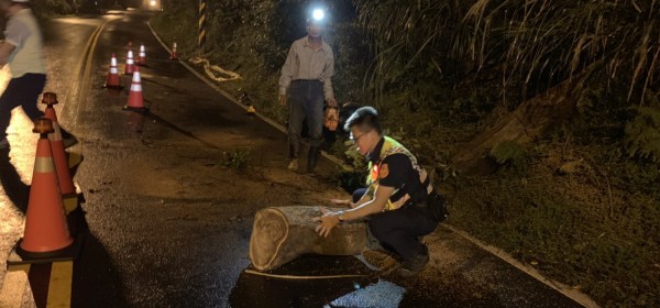 5日晚間21時許,蘆竹外社山區下起大雷雨,一棵巨大