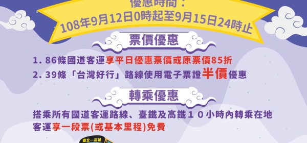108年中秋連續假期即將到來,為服務返鄉及出遊