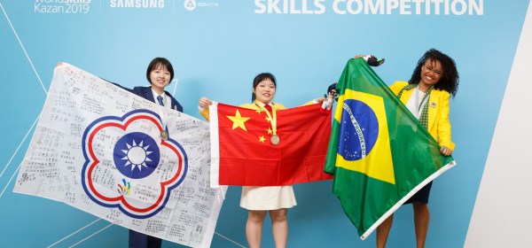 服裝創作職類國手柯宥萱(左1)在第45屆國際技能競
