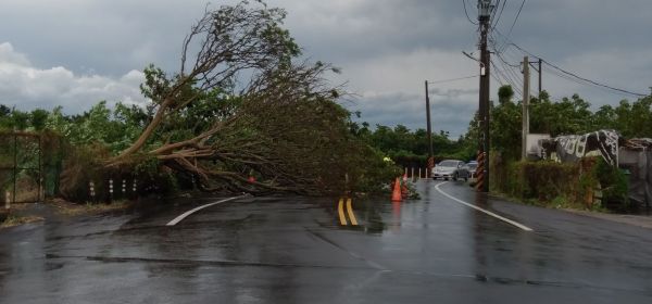 白鹿颱風來襲北部風雨漸增,桃園市八德區茄苳路有路樹
