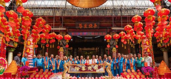 桃園市長鄭文燦18日上午前往中壢慈惠堂,陪同總統蔡