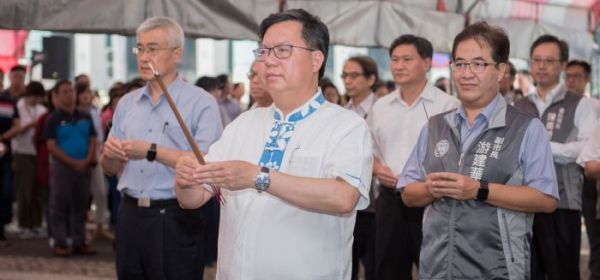 桃園市長鄭文燦15日下午於市府前廣場,率市府團隊出