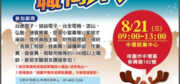 桃園市政府就業服務處與原民局訂於8月21日(三)9