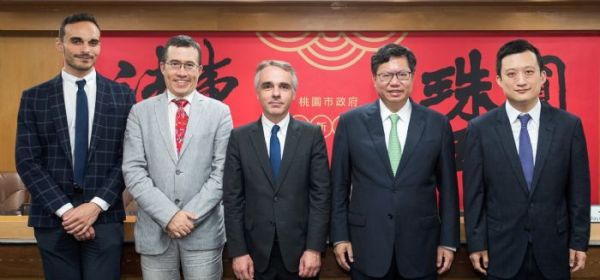 桃園市長鄭文燦(24)日上午主持市政會議,頒授法國
